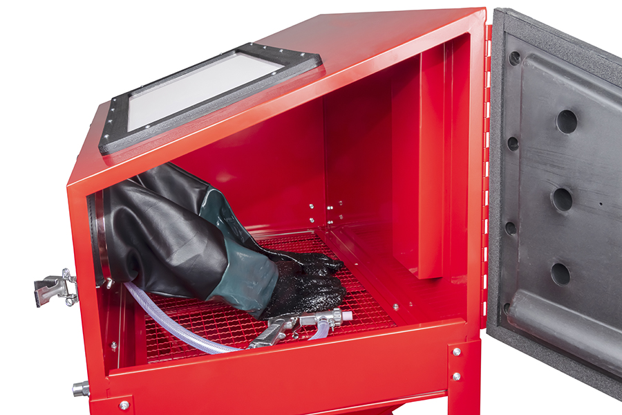 Пескоструйная камера подходит для обработки различных деталей и предназначена для снятия грунта, краски, ржавчины. Позволяет производить обработку изделий и инструментов без создания специального пространства и дополнительной защиты оператора. В верхней части располагается прозрачное стекло для обзора детали. Для работы необходимо подключитель изделие к системе подачи сжатого воздуха.
