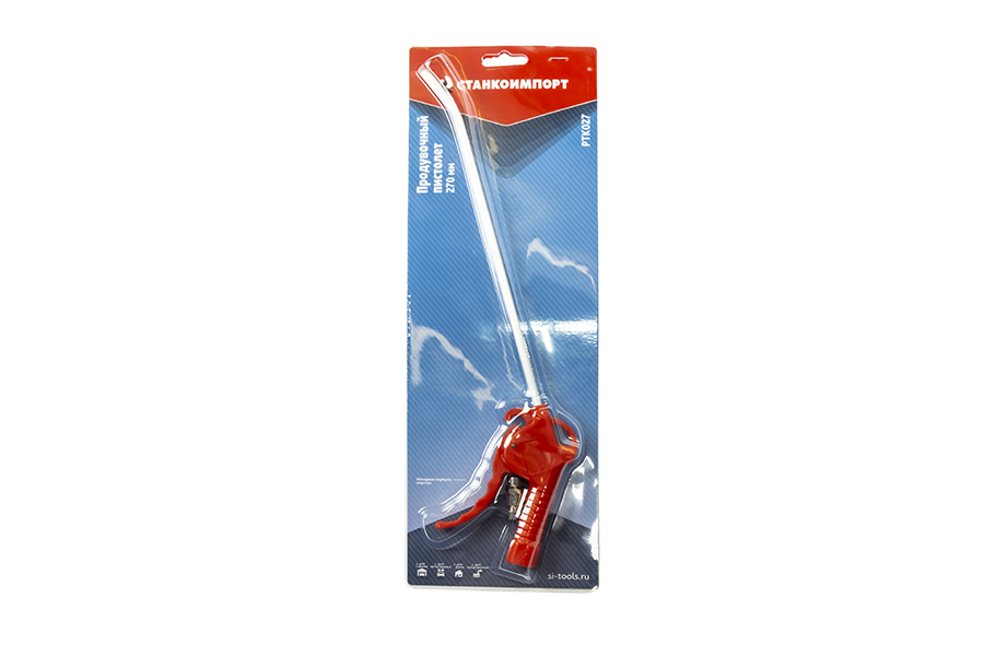 Продувочный пистолет Станкоимпорт PTK027 270 мм применяется для удаления пыли, мусора и жидкостей с различных поверхностей, а также для продувки деталей. Его корпус выполнен из прочного пластика, благодаря чему рассчитан на длительный срок эксплуатации.