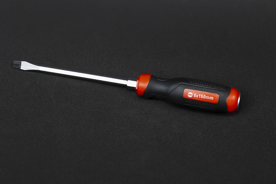 Отвертка изготовлена из высококачественной легированной хром-ванадиевой инструментальной стали, с последующей закалкой до твердости в пределах 46-48HRC, что соответствует всем требования нормативной документации. Наконечник проходит дополнительную термическую обработку с целью получения оптимального сочетания твердости и пластичности. Сквозная посадка стержня и металлический затыльник позволяют применять ударное воздействие. Шестигранный профиль у основания рукояти позволяет посредством ключа существенно увеличить усилие, передаваемое крепежу. Отвертка снабжена двухкомпонентной эргономичной рукоятью. Благодаря высококачественным компонентам рукоять имеют высокую стойкость к агрессивным средам.